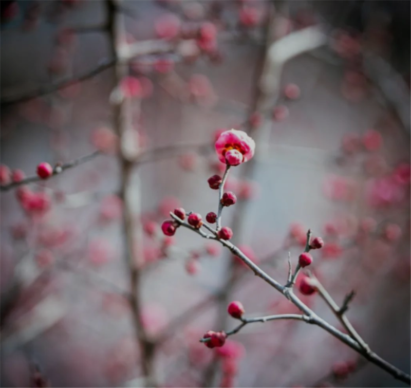 一(yī)株株梅花(huā)已含苞待放(fàng),枝頭綴滿紅(hóng)豔豔的(de)花(©huā)苞,色彩濃烈,像不(bù)像一(yī)個(gè)天然的(de)小(xiǎo)心心,感歎大(dà)自(zì)然的(de)神奇之筆(bǐ).