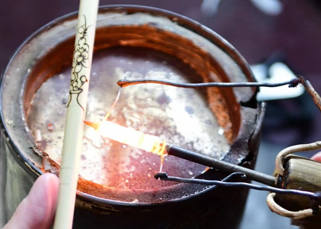 烙鐵(tiě)通(tōng)紅(hóng),落筆(bǐ)生(shēng)花(huā)。陳輝 攝