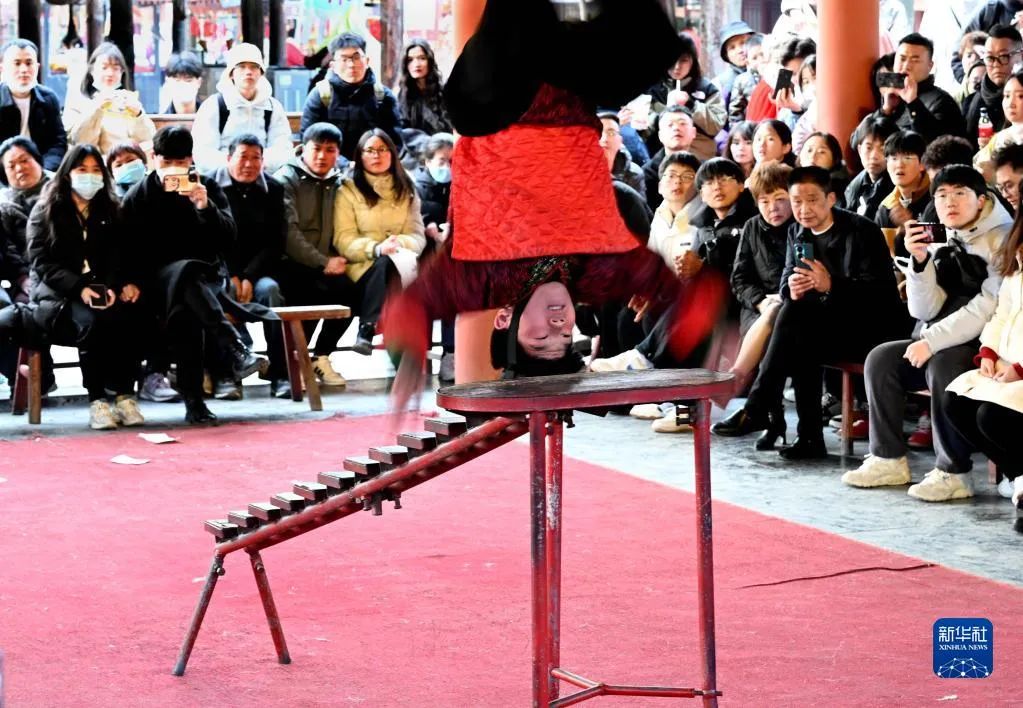 遊客在開(kāi)封清明(míng)上(shàng)河(hé)園景區(qū)內(nèi)觀看(kàn)民(mín)俗♠表演(2月(yuè)14日(rì)攝)。