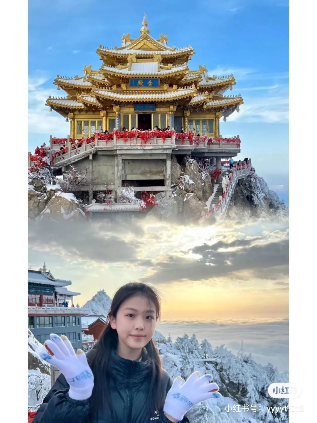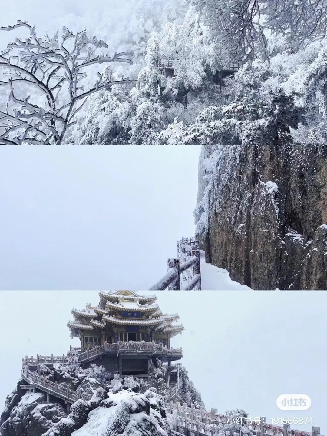 來(lái)自(zì)小(xiǎo)紅(hóng)書(shū)博主 @jujuzey 下(xià)雪(xuě)霧很($hěn)大(dà)看(kàn)不(bù)清金(jīn)頂,但(dàn)是(shì)沿路(lù)雪(xuě)景真的(de)很(hěn)美(měi)。