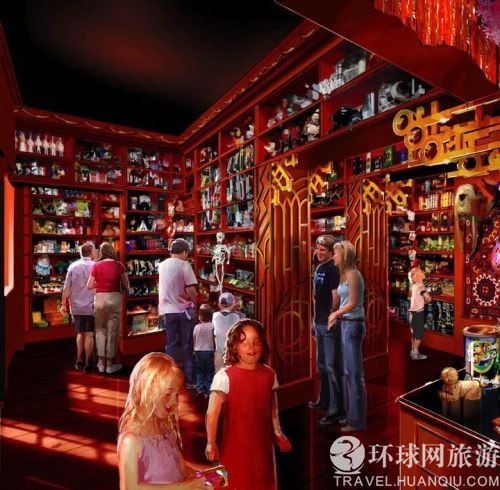 霍格莫德村(cūn)的(de)魔法商店(diàn),此圖是(shì)主題公園主辦方的(de)模拟效果圖。