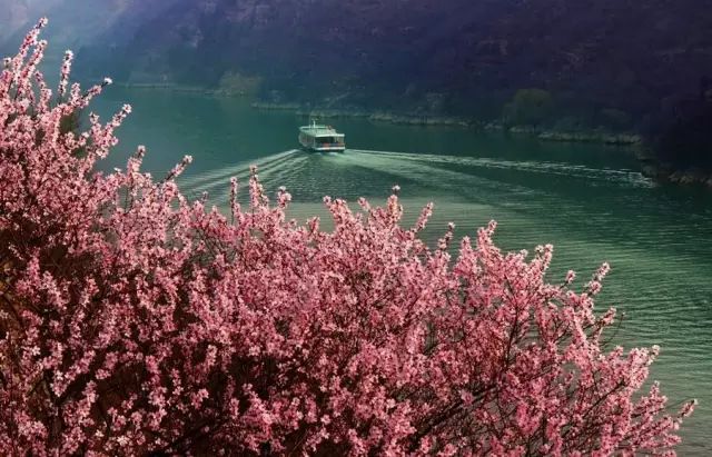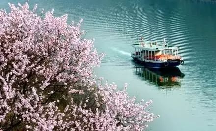 春色撩人(rén),泛舟輕遊,更是(sh"ì)醉人(rén)。在藍(lán)天碧水(shuǐ)的(de)映襯下(xià)。兩岸桃花(huā)競相(xi×àng)綻放(fàng)。一(yī)動一(yī)靜(jìng),芳華自(zì)顯。
