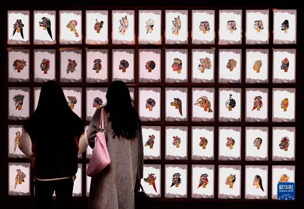 遊客在開(kāi)封清明(míng)上(shàng)河(hé)園景區(qū)內(nèi)觀看(kàn)展示的(de)皮影(yǐng)(2月(yuè)14日(rì)攝 )。