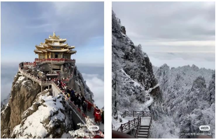 來(lái)自(zì)小(xiǎo)紅(hóng)書(shū)博主 @jujuzey 下(xià)雪(xuě)霧很($hěn)大(dà)看(kàn)不(bù)清金(jīn)頂,但(dàn)是(shì)沿路(lù)雪(xuě)景真的(de)很(hěn)美(měi)。