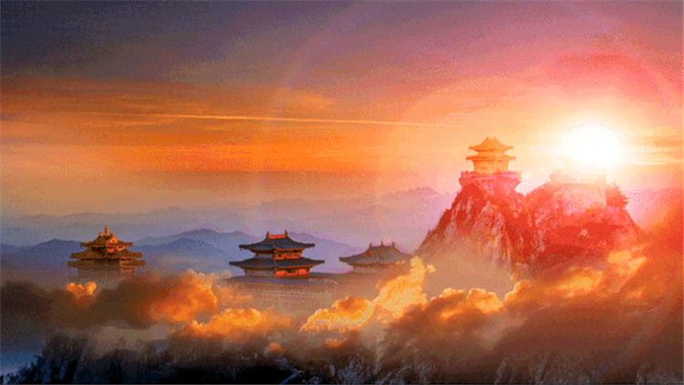 靈霄绛阙,瓊樓玉宇,伴著(zhe)日(rì)出日(rì)落的(de)縷縷霞光(guāng),好(hǎo)似一(yī)幅流動的(de)畫(huà)卷!