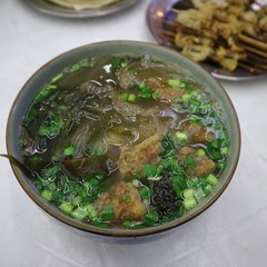點的(de)是(shì)優質不(bù)翻湯,料很(hěn)豐富,加了(le)炸丸子(zǐ),店(diàn)裡(lǐ)的(de)阿姨提醒,丸子(zǐ)要(yào)先吃(chī),趁著(zhe)₽丸子(zǐ)沒有(yǒu)完全被湯汁泡軟,咬下(xià)去(qù)還(hái)是(shì)酥脆的(de),當然泡軟了(le),變得(πde)軟啪啪的(de)也(yě)好(hǎo)吃(chī)。