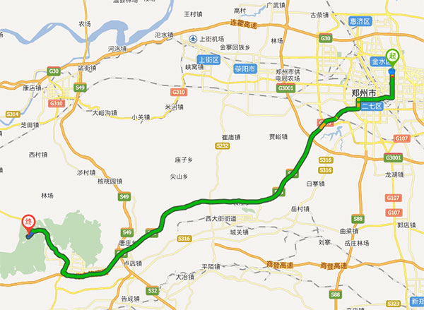 1小(xiǎo)時(shí)59分(fēn)鐘(zhōng)96.1公裡(lǐ)28個(gè)紅(hóng)綠(lǜ)燈,打車(chē)約213元 途徑:隴海(hǎiΩ)路(lù)快(kuài)速通(tōng)道(dào)、鄭少(shǎo)洛高(gāo)速公路(lù)